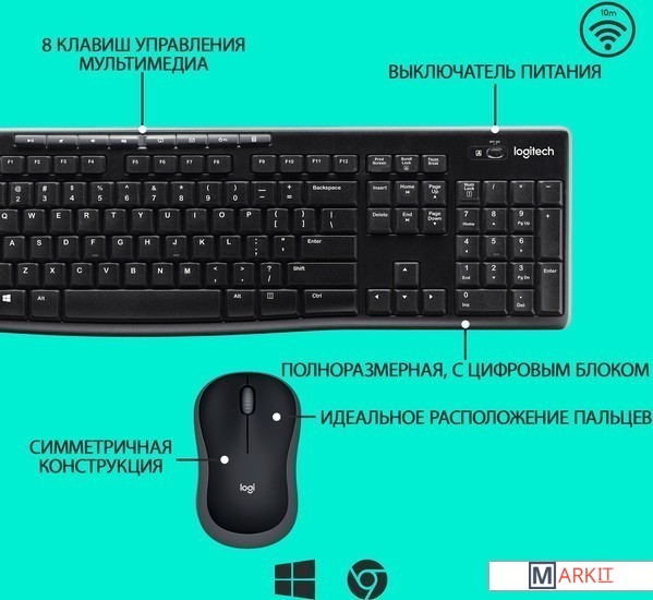 Markit » Комплекты клавиатура и мышь » Клавиатура + мышь Logitech Wireless Combo MK270